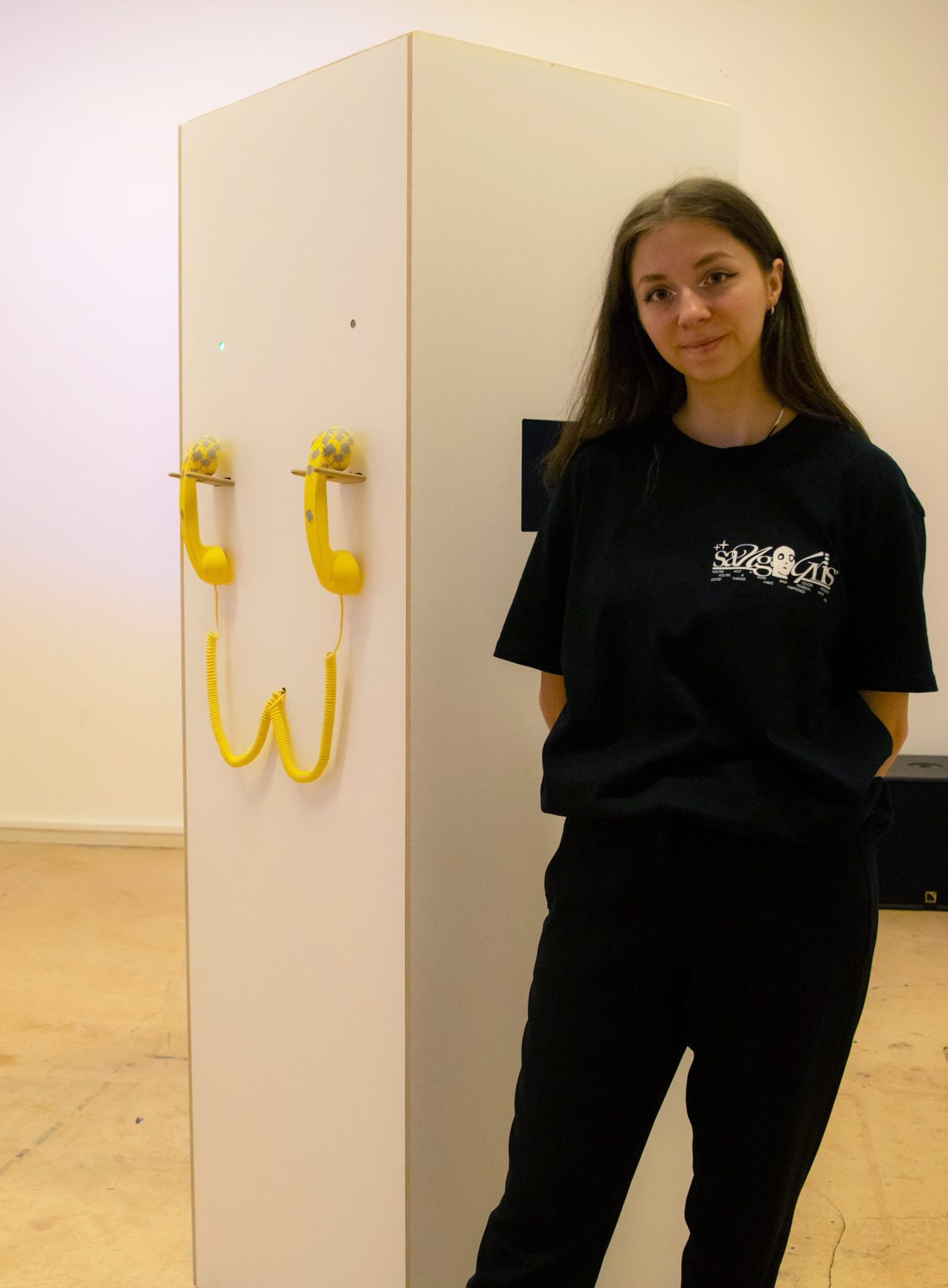 Cette cabine interactive interroge notre rapport à l’hyper-connectivité. D’un côté, le spectateur observe un voyant de statut (en ligne/hors ligne). De l’autre, il est invité à décrocher deux combinés pour suivre une conversation interminable et fragmentée, mimant nos échanges SMS modernes. Sur les côtés, une sonnette « Envoyer une notification » déclenche des réactions animées, illustrant le caractère parfois intrusif et écrasant de la disponibilité permanente. Ce projet a été conçu dans le cadre de l’ECAL.